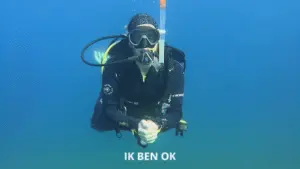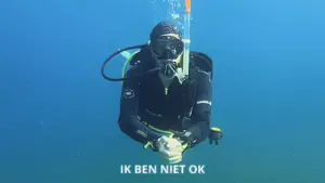 Krijg je dit teken? Dan moet je omhoog komen naar de diepte van je buddy of instructeur.