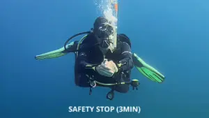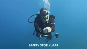 Bij het Safety Stop signaal begin je aan de 3 minuten Safety Stop op 5 meter.