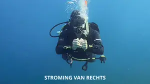Dit signaal geef je wanneer er stroming van rechts (of andersom bij stroming van links) is. Het kan zijn dat je door dit signaal te geven moet omdraaien of de duik anders moet plannen.